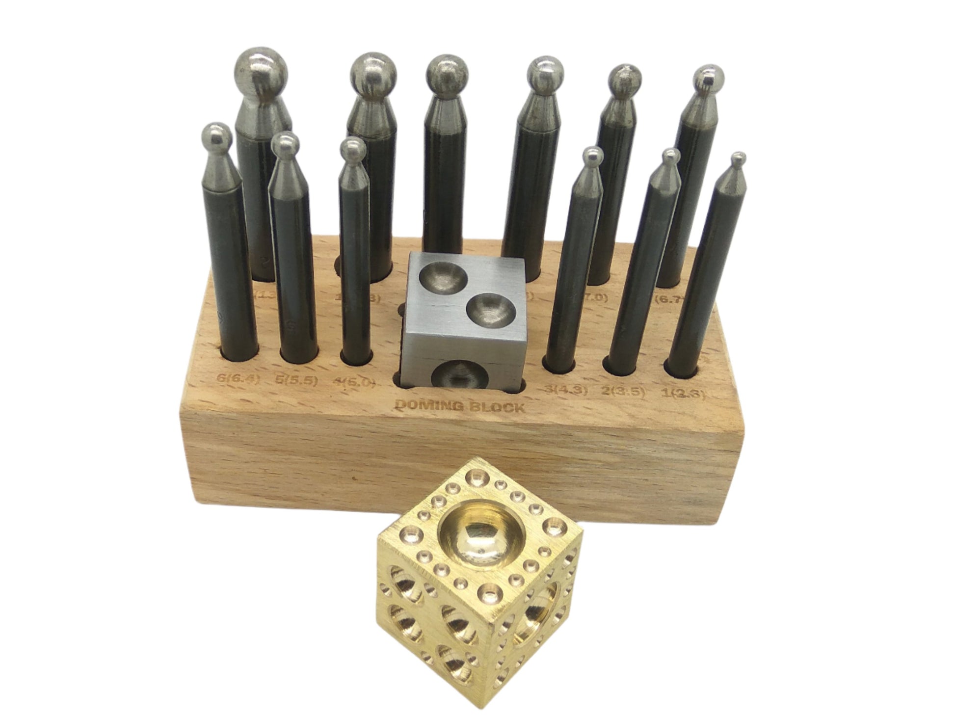- Solid brass doming block: Comes with diameters from 2mm to 16mm within a 25mm square.