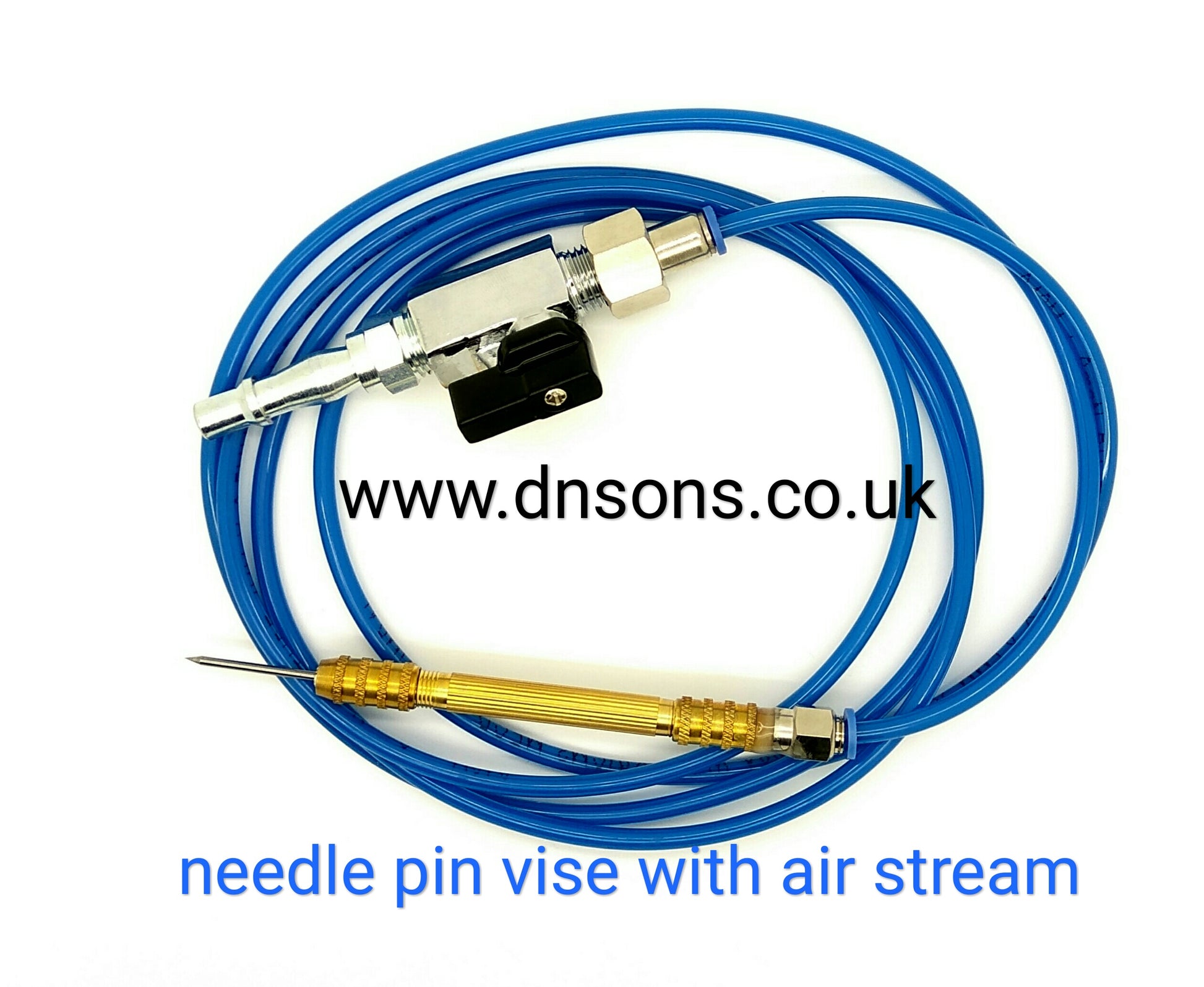 Brass Pin Vise with Air Stream & 1.8mm Tungsten Needle for Fossil Preparation – Includes 1.8m Air Pipe & Foot Lever Option