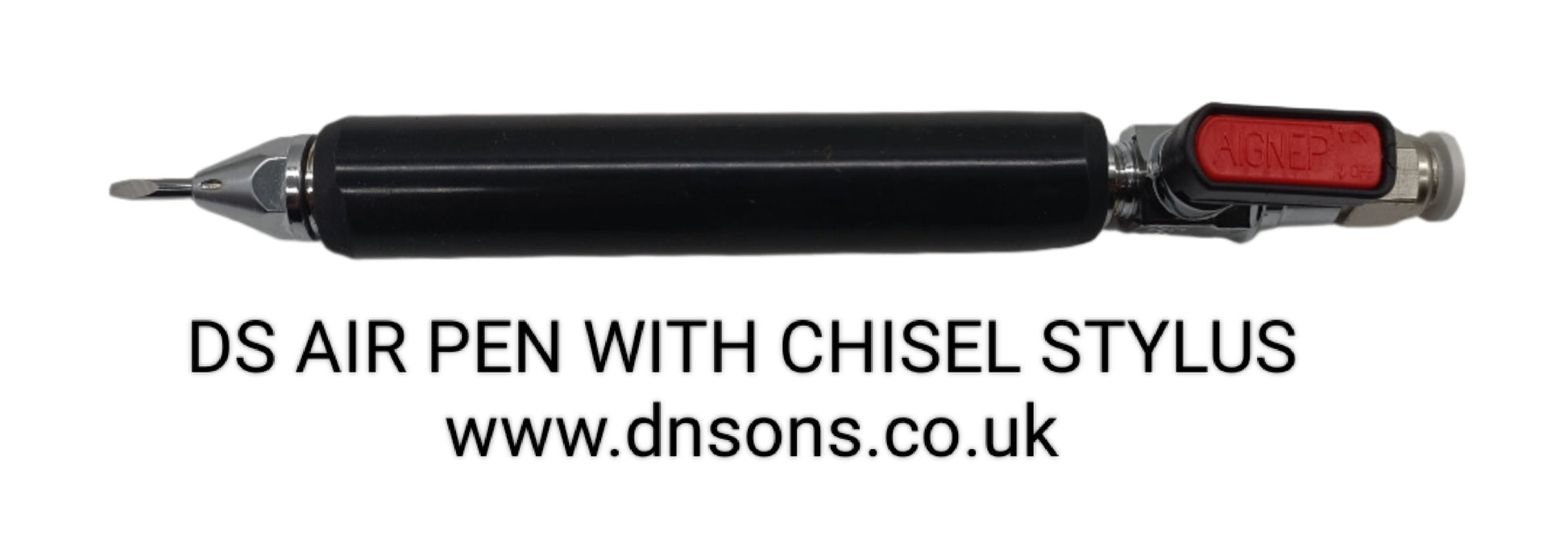 The DNSONS DS PEN is a highly versatile air scribe tool, optimized for both roughing and finishing applications. It is engineered for demanding work on hard rocks and fossil matrices, capable of operating at air pressures between 2 to 4 bar. The DS PEN is equipped with a 3mm diameter tungsten stylus, making it an ideal choice for precise work on tough materials.